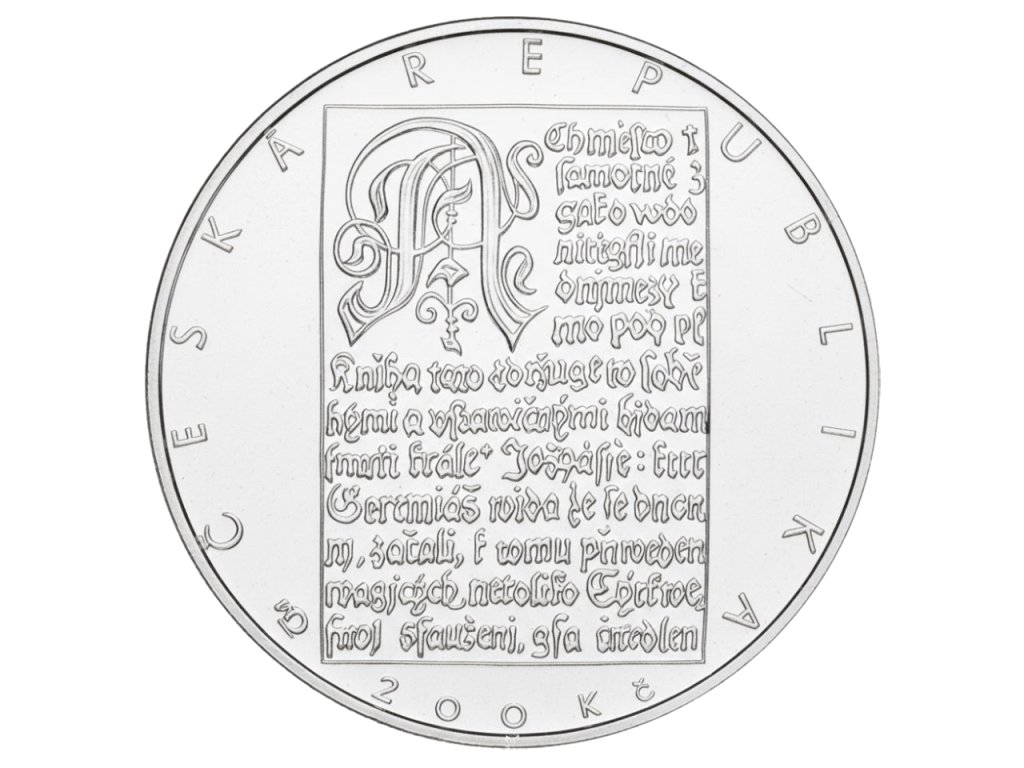 Česká národní banka představuje stříbrnou minci s nominální hodnotou 200 Kč, raženou ve standardní kvalitě, k oslavě 425. výročí prvního vydání kralické bible.
