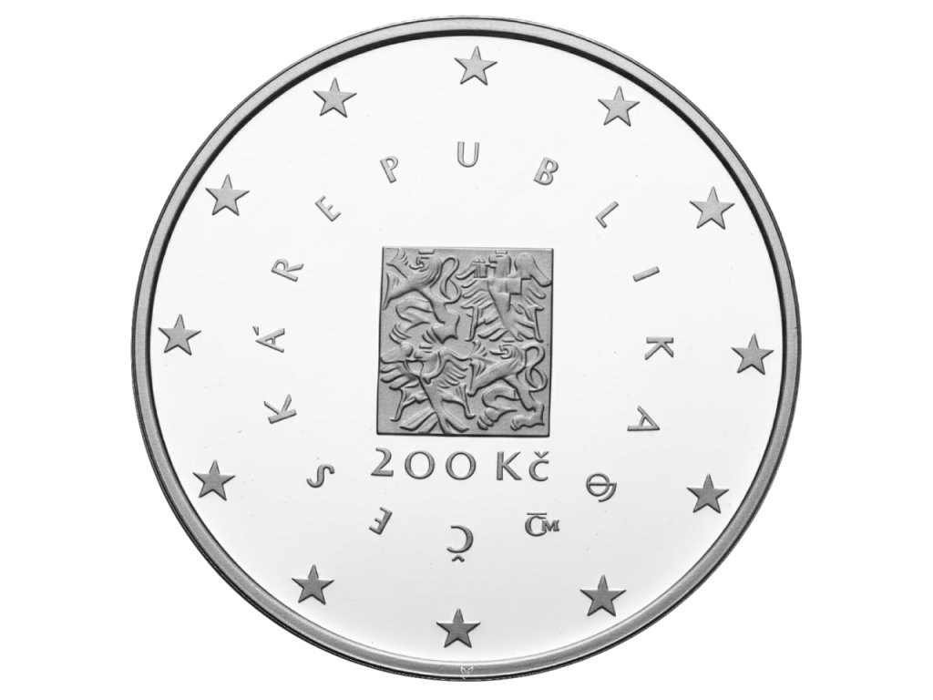 Česká národní banka vydává stříbrnou minci s nominální hodnotou 200 Kč, raženou v leště kvalitě proof, na počest Vstupu České republiky do Evropské unie.