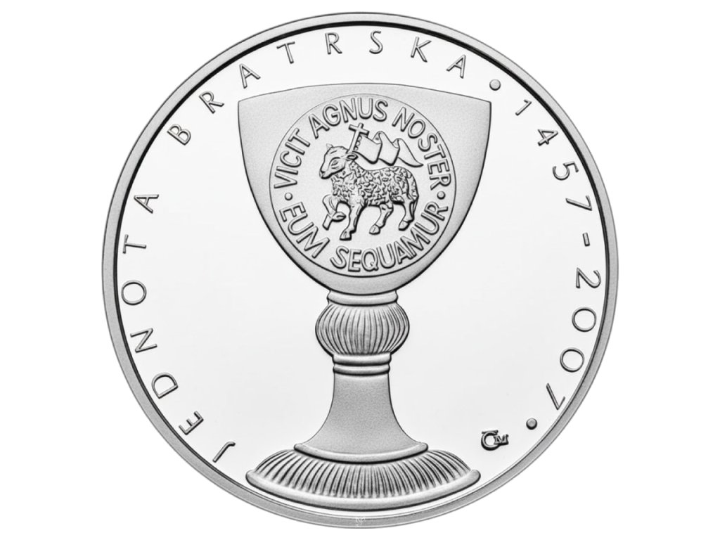 Česká národní banka vydává stříbrnou minci s nominální hodnotou 200 Kč, raženou v leště kvalitě proof, na počest 550. výročí založení Jednoty bratrské.