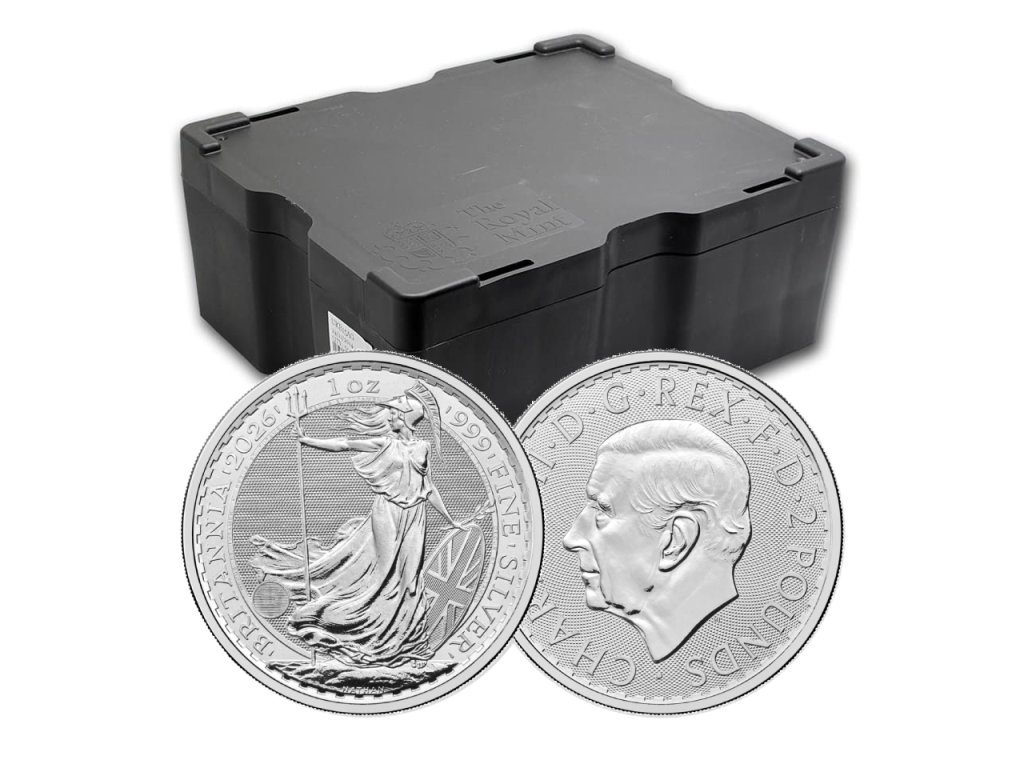 Originální master box s 500 ks stříbrných mincí Britannia 1 Oz (31,103g) je symbolem britské mincovní tradice a jednou z nejuznávanějších investičních mincí na světě. Razí ji Britská královská mincovna z 99% ryzího zlata.