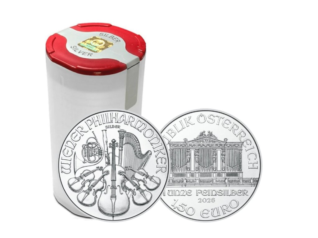 Originální tuba s 20 ks stříbrných mincí Wiener Philharmoniker 1 Oz (31,103g) nabízí tradiční způsob uchování hodnoty. Prémiová kvalita rakouské rafinérie Münze Österreich a ryzost 999,9 z ní činí zajímavou volbu pro dlouhodobou investici.