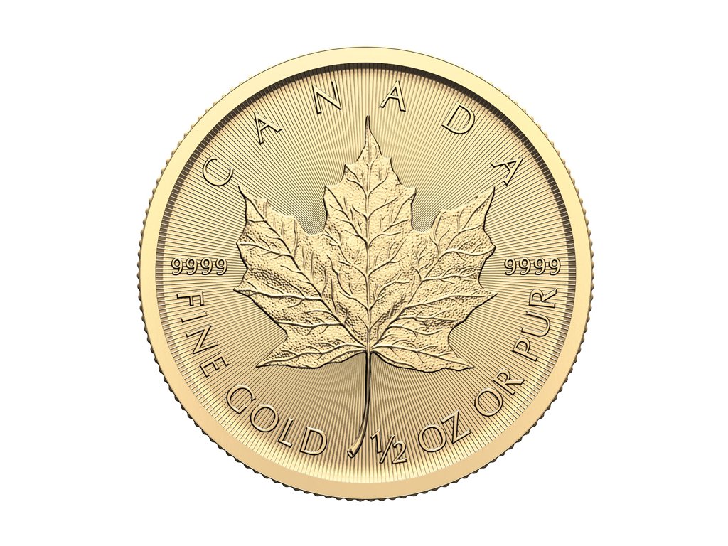 Zlatá investiční mince Maple Leaf 1/2 Oz (15,552 g) patří mezi nejuznávanější investiční mince na světě. Vyražená Kanadskou královskou mincovnou z 99,99% ryzího zlata, vyniká svou výjimečnou čistotou, precizním zpracováním a vysokou likviditou. Různé ročníky.