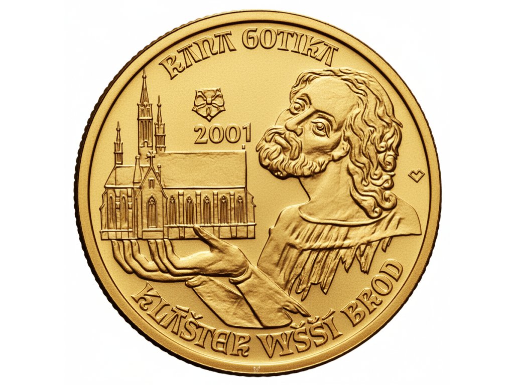 Zlatá sběratelská mince 2 000 Kč Raná gotika - klášter ve Vyšším Brodě 2001 standard (B.K.)
