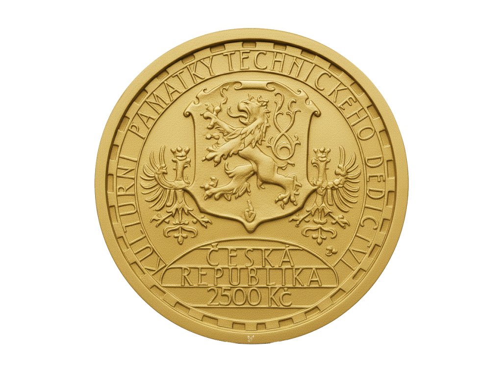 Na lícní straně mince jsou stylizovaná heraldická zvířata z velkého státního znaku a na mezikruží v podobě ozubeného kola je neuzavřený opis s názvem cyklu "KULTURNÍ PAMÁTKY TECHNICKÉHO DĚDICTVÍ". Ve spodní části mince je v oválném medailonu název státu "ČESKÁ REPUBLIKA" a označení nominální hodnoty se zkratkou peněžní jednotky "2500 Kč". Značka mincovny, která minci razila, je umístěna při pravém spodním okraji mezi moravskou orlicí a názvem státu.