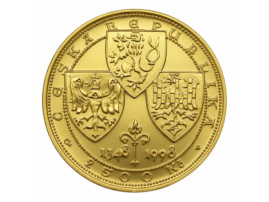 Zlatá sběratelská mince 2500 Kč Vydání souboru právních dokumentů Koruny České v r. 1348 | 1998 standard (B.K.)