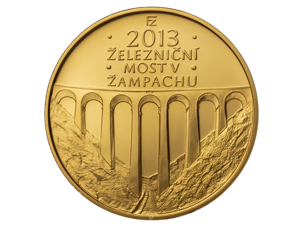 Zlatá mince 5000 Kč Železniční most v Žampachu 2013 standard