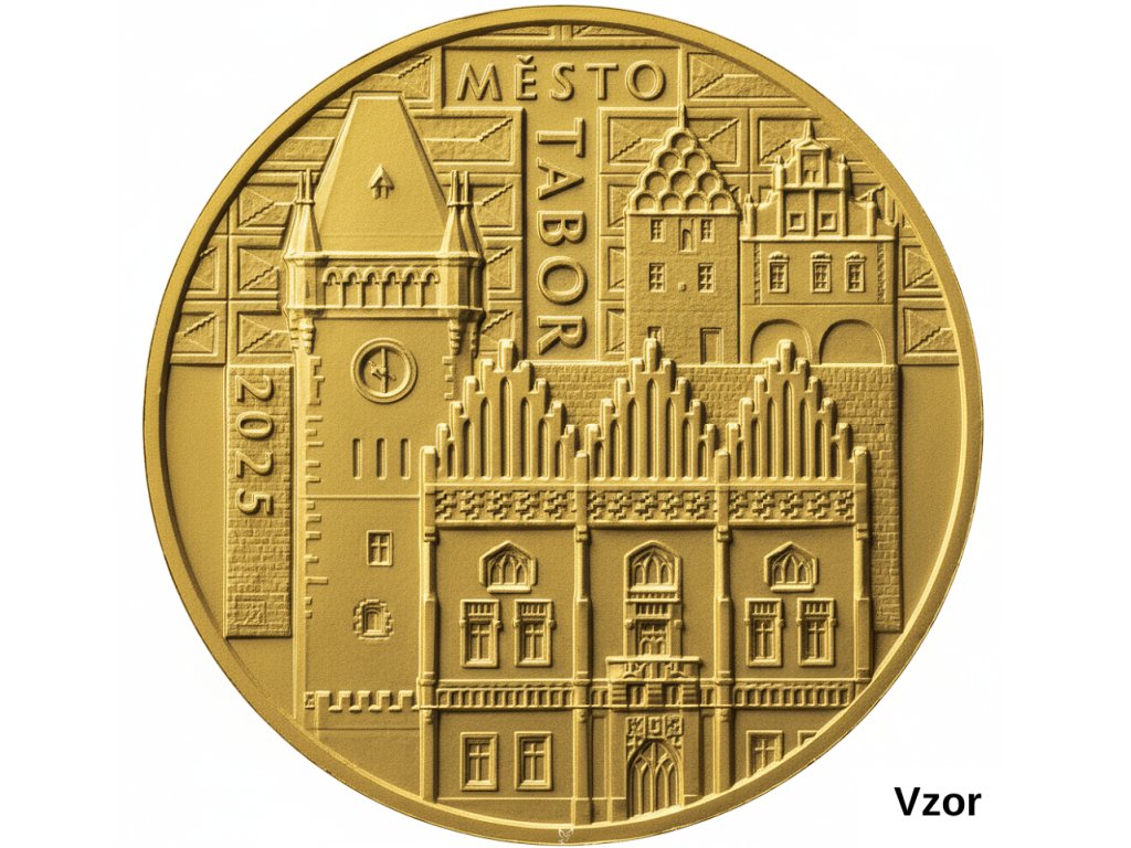 Tábor standard 2025 – zlatá mince, 15,55 g, ryzost zlata 999,9/1000, provedení standard (B.K.), limitovaná edice, cyklus ČNB Městské památkové rezervace, investiční a sběratelská mince, mince spojující stabilní hodnotu zlata s rostoucím sběratelským zájmem.