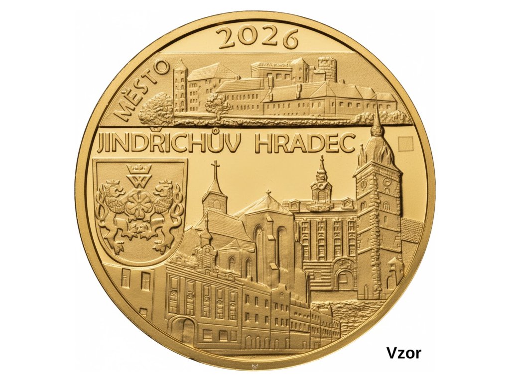 Jindřichův Hradec proof 2026 – zlatá mince, 15,55 g, ryzost zlata 999,9/1000, provedení proof, limitovaná edice, cyklus ČNB Městské památkové rezervace, investiční a sběratelská mince, mince spojující stabilní hodnotu zlata s rostoucím sběratelským zájmem.