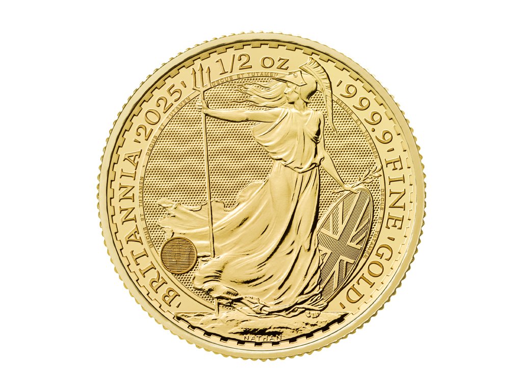 Zlatá investiční mince Britannia 1/2 Oz (15,55 g) je symbolem britské mincovní tradice a jednou z nejuznávanějších investičních mincí na světě. Razí ji Britská královská mincovna z 99,99% ryzího zlata a její design zobrazuje postavu Britannia – symbol síly a stability.